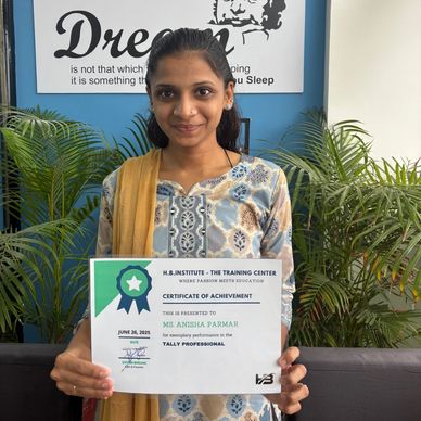 Congratulations Ms. Anisha Parmar for achieving certification in Tally Professional 👏