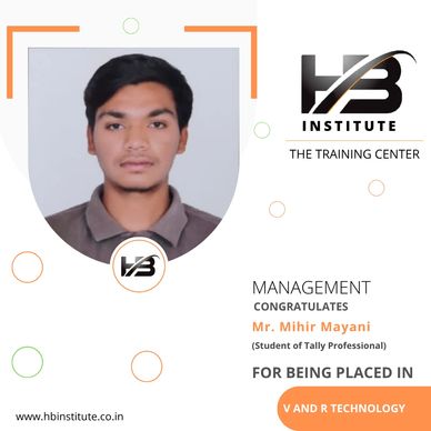 Congratulations Mr. Mihir Mayani for the job placement in V & R Technology. 🥳